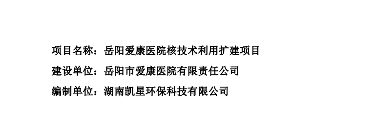 項目名稱:岳陽愛康醫(yī)院核技術(shù)利用擴建項目